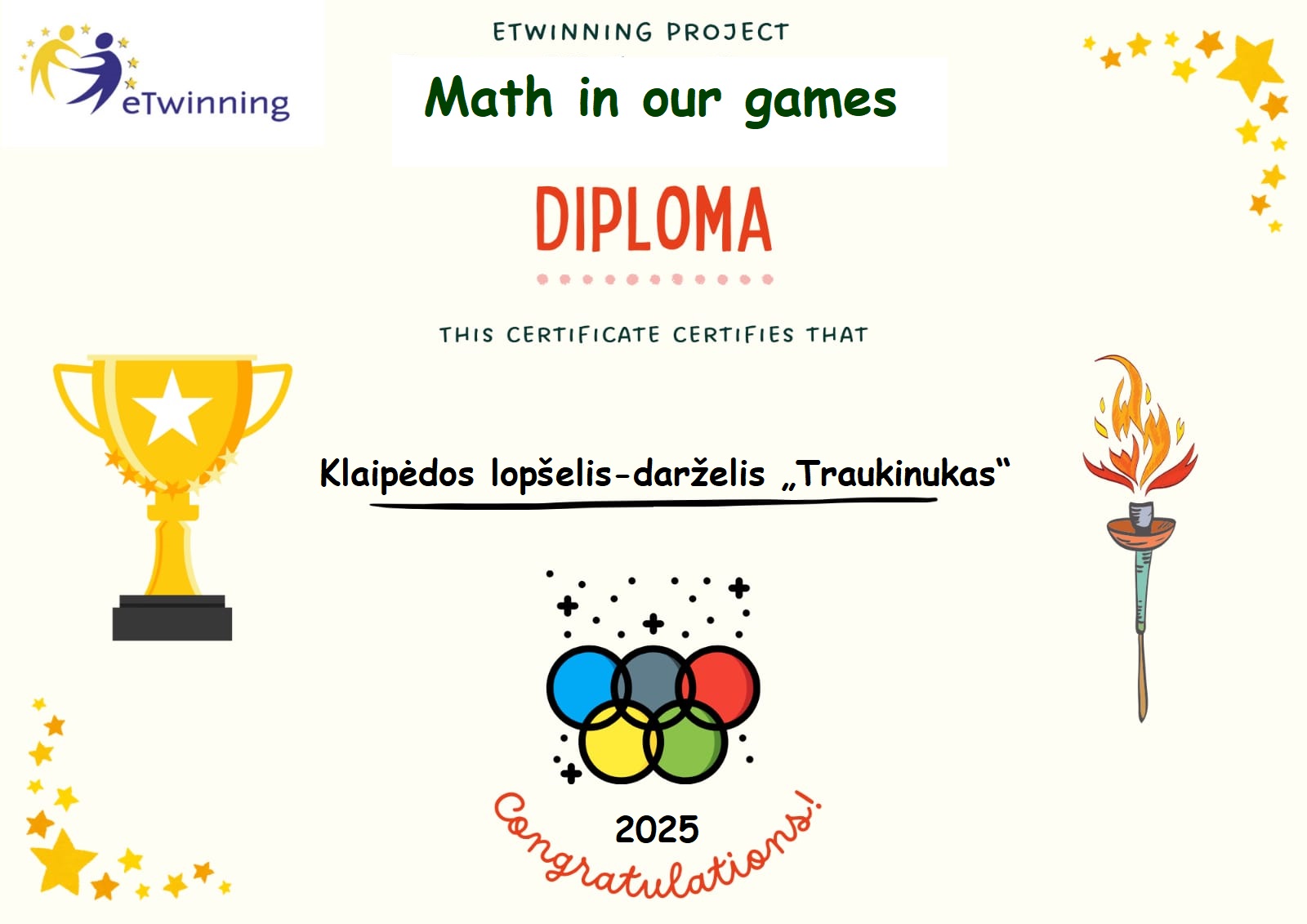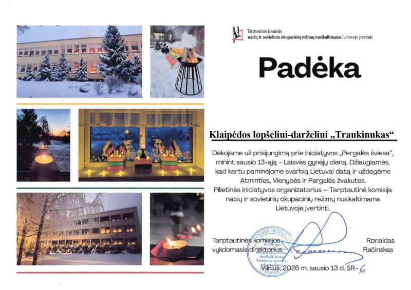 Diplomai, padėkos už dalyvavimą įvairiuose projektuose ir renginiuose: